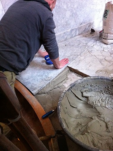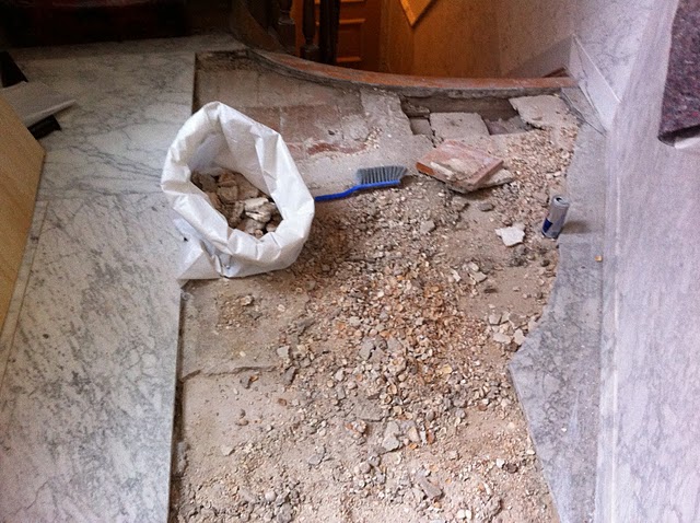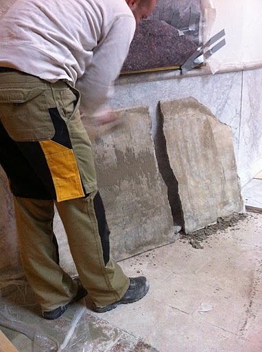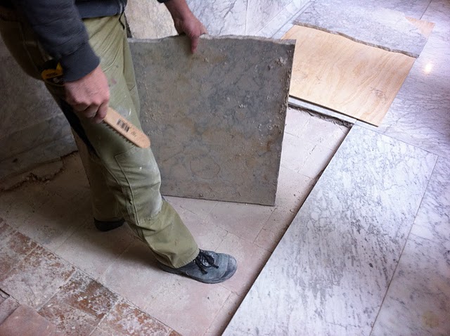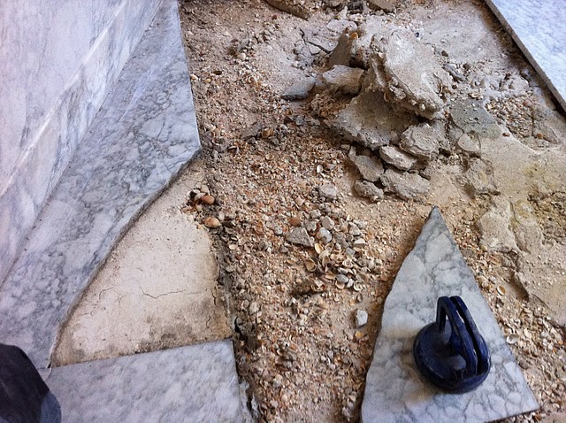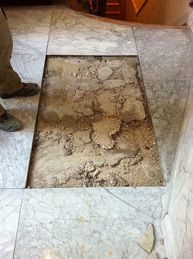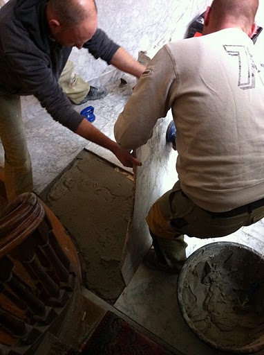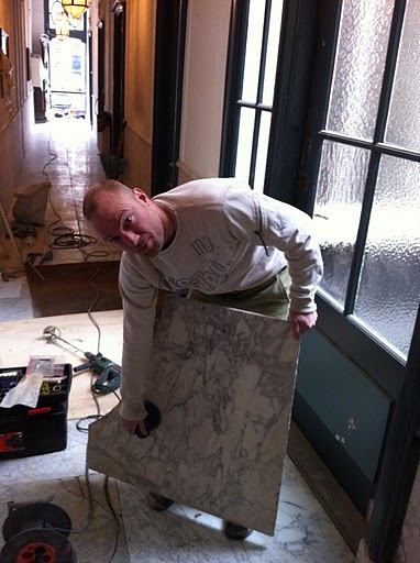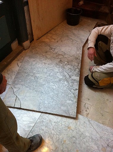Hieronder geven wij u een korte indruk van het vervangen van enkele tegels in een bestaande vloer. De locatie is een grachtenpand te Amsterdam. De vloer is enkele honderden jaren oud.